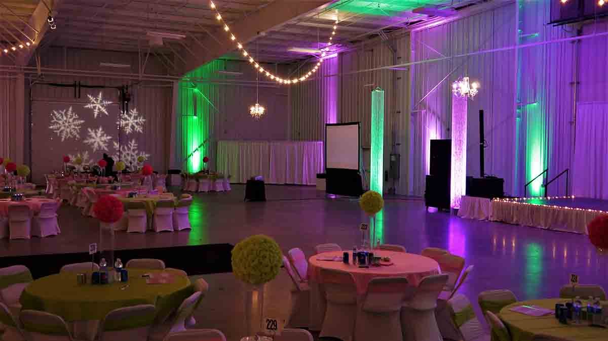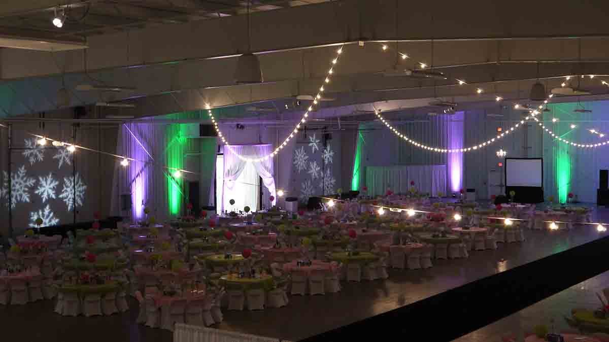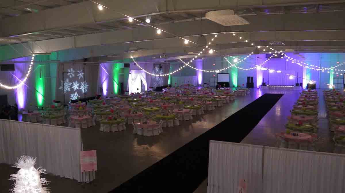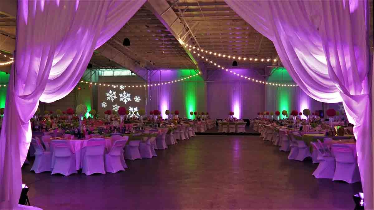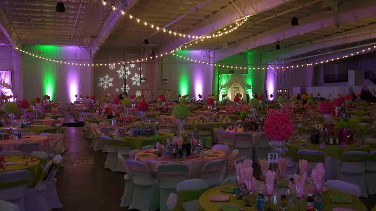 Here’s an event where we were brought in to provide lighting and effects by Cynthia Rumph Chairperson of Alpha Kappa Alpha and Party Reflections for the Annual Fundraiser GALA held at the South Carolina State FairGround’s “Cantee & Goodman Buildings” in Columbia, SC. They wanted a “Winter Wonderland” theme. The event catering was provided by Southern Way Catering. The awesome entertainment was provided by the Finesse Band. Tables & linens were professionally setup and provided by Party Reflections. Video and audio elements were provided by Sound and Images.