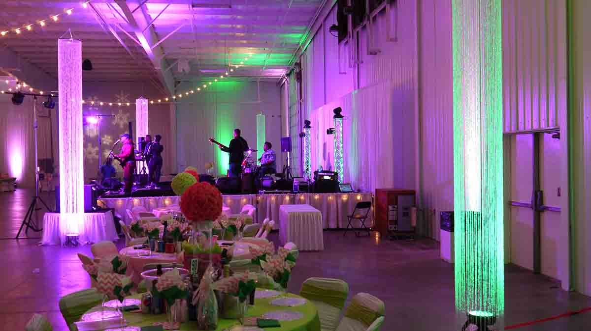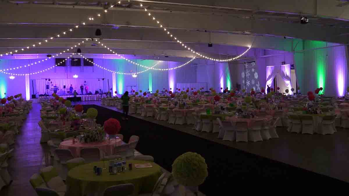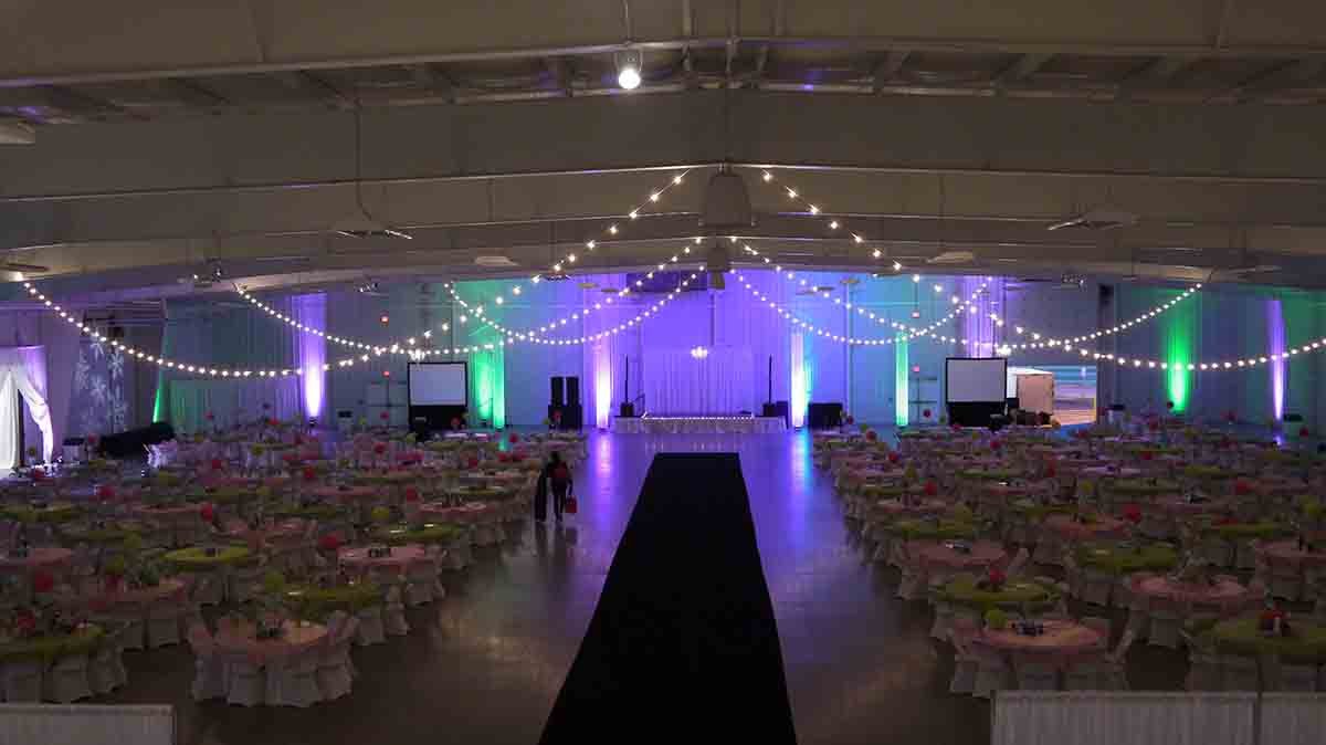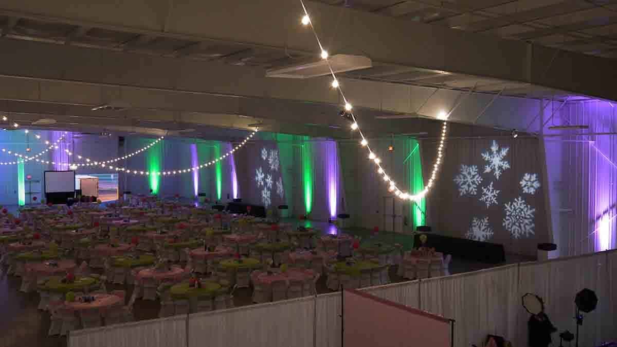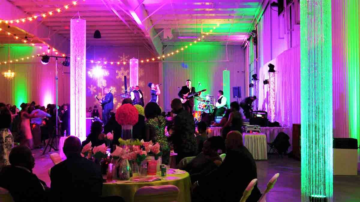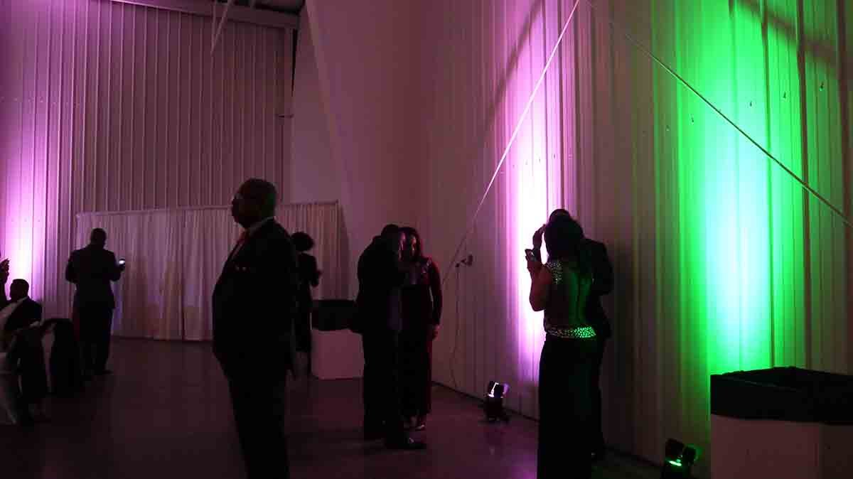 Here’s an event where we were brought in to provide lighting and effects by Cynthia Rumph Chairperson of Alpha Kappa Alpha and Party Reflections for the Annual Fundraiser GALA held at the South Carolina State FairGround’s “Cantee & Goodman Buildings” in Columbia, SC. They wanted a “Winter Wonderland” theme. The event catering was provided by Southern Way Catering. The awesome entertainment was provided by the Finesse Band. Tables & linens were professionally setup and provided by Party Reflections. Video and audio elements were provided by Sound and Images.