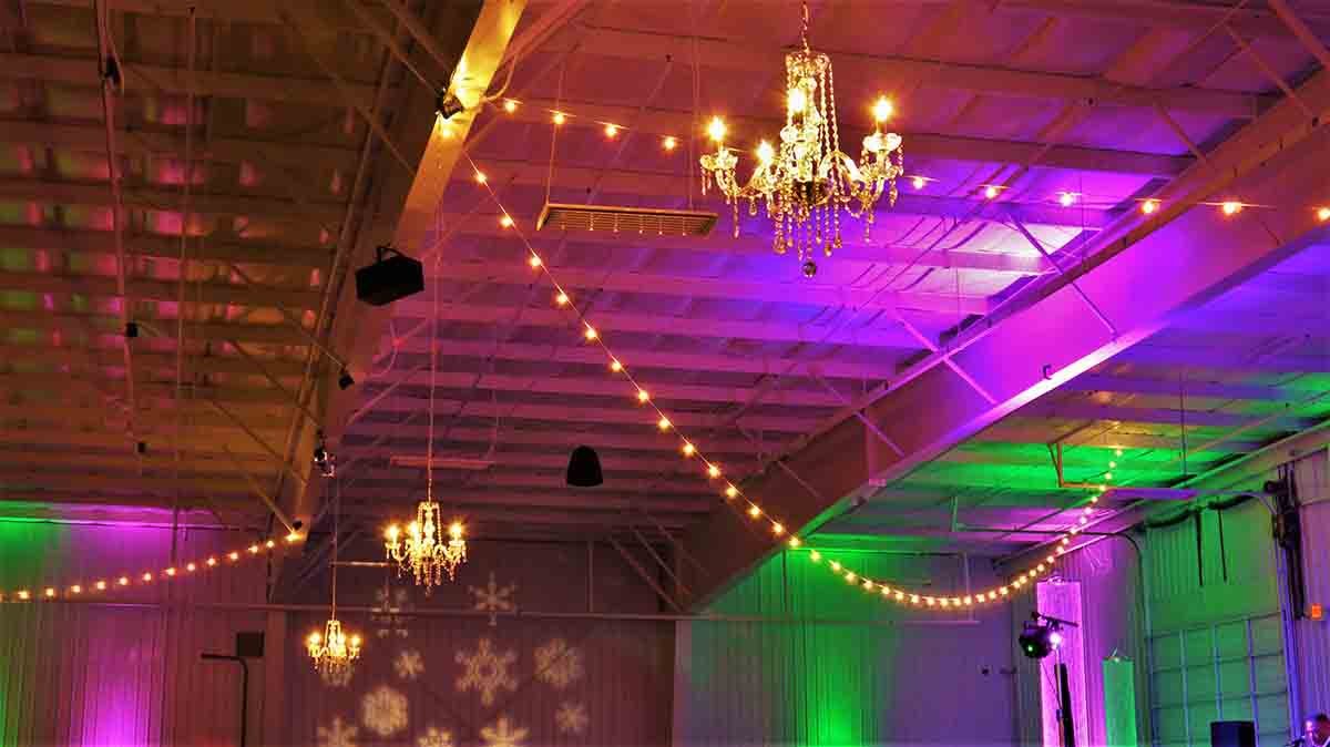 Cafe Style Stringers strung throughout ceiling ( 70′ White C7)