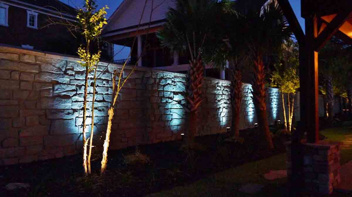 - Uplighting for the stone wall