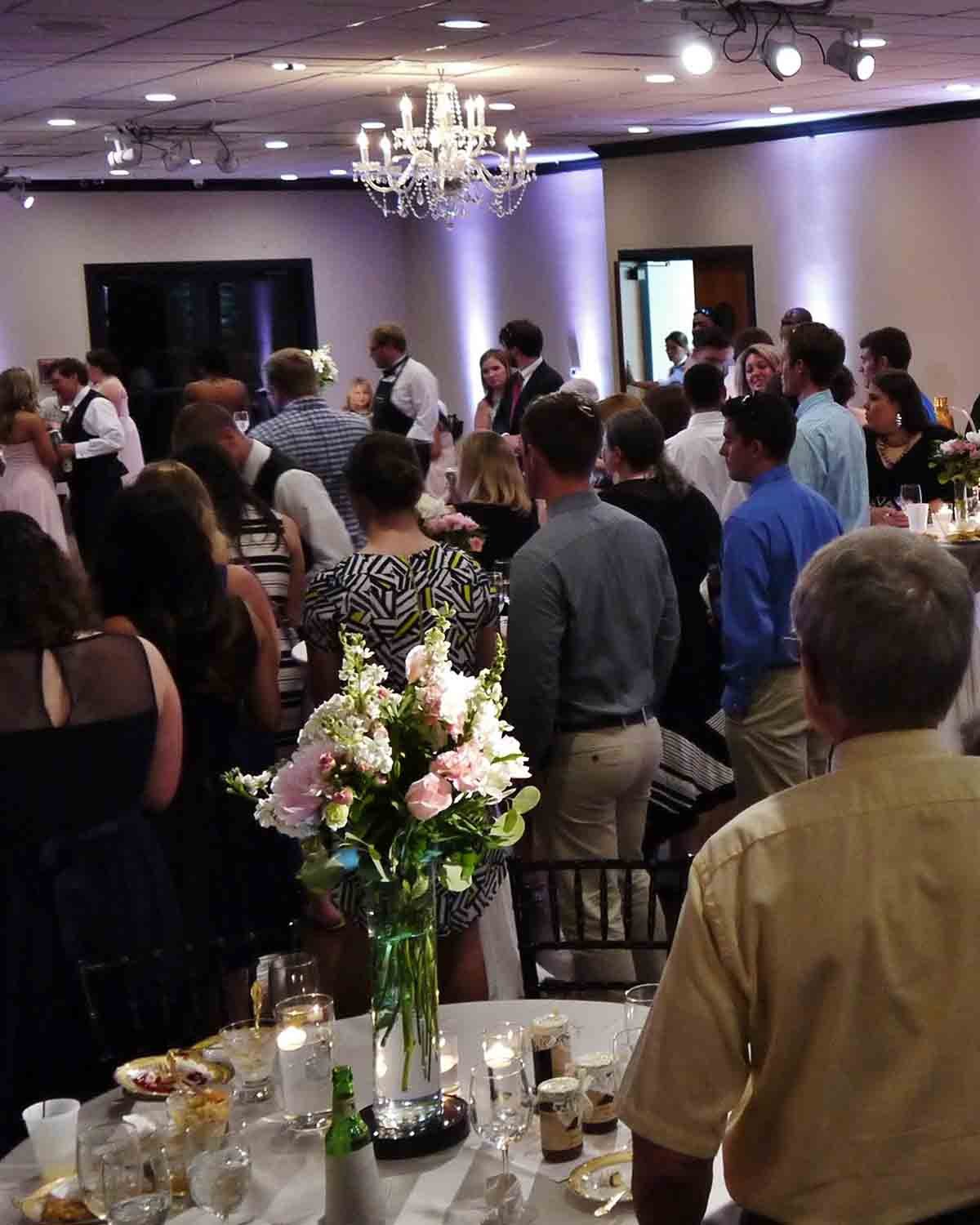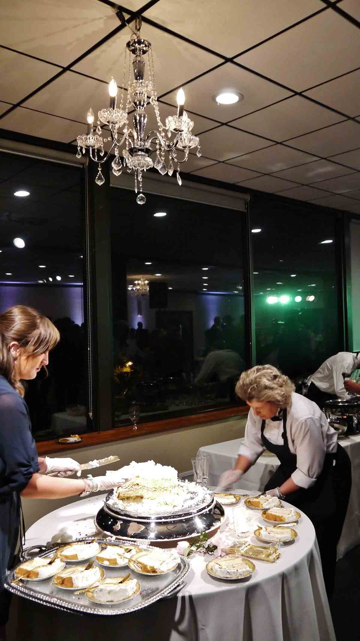 - Chandeliers over the dancefloor and cake
