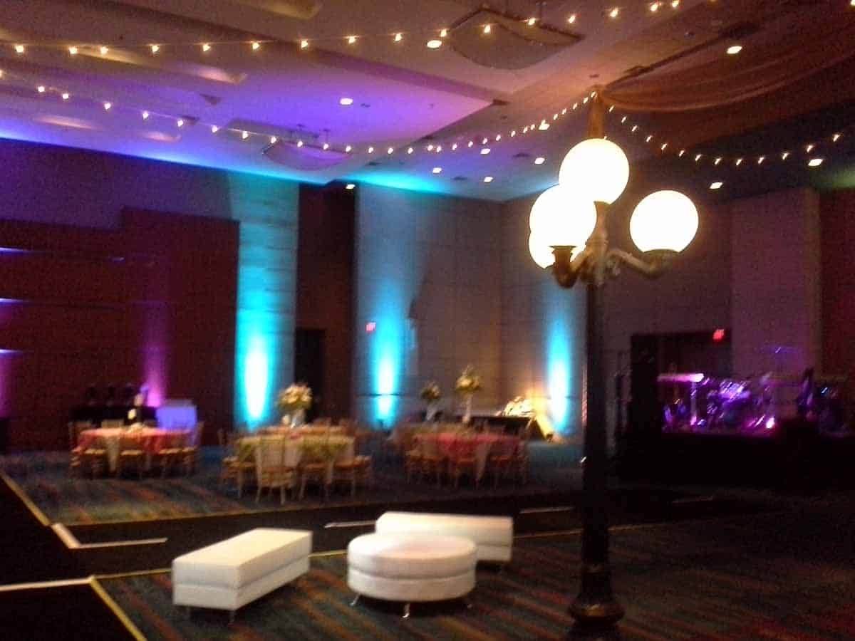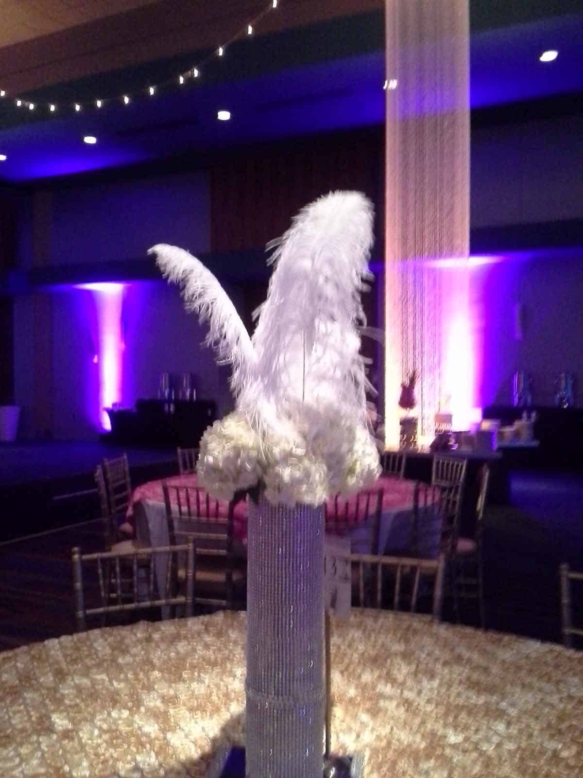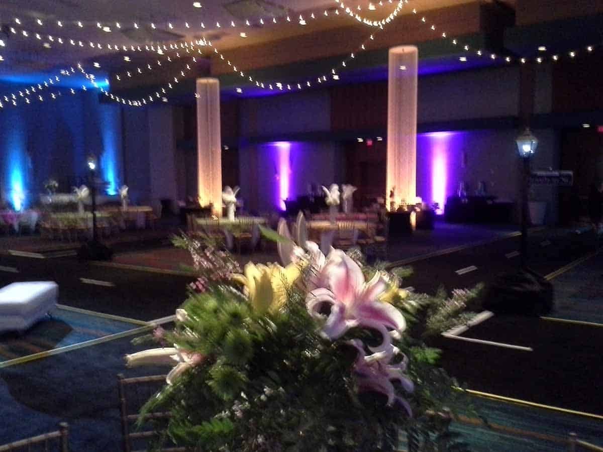 Crystal Columns (20′ x 3′) rotating w/uplighting at center entrance to reception