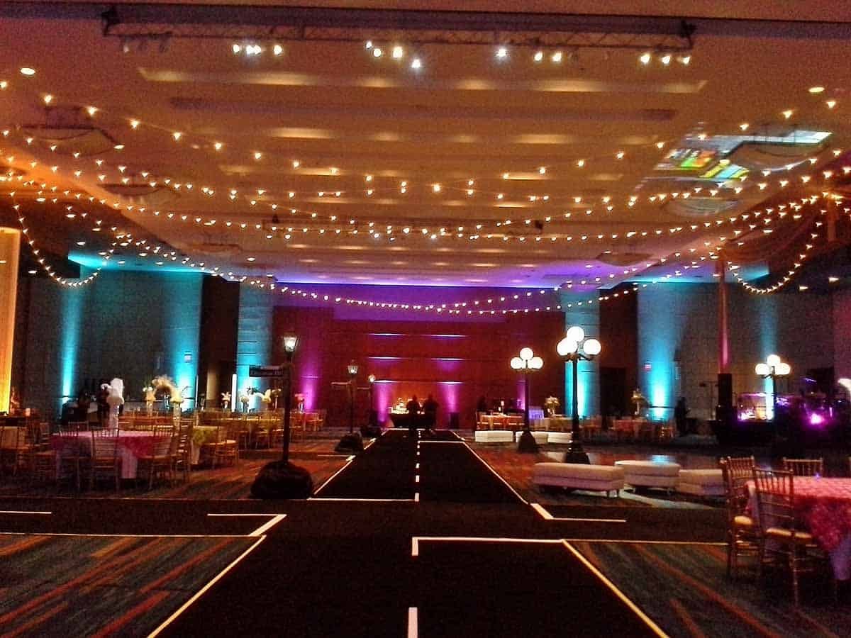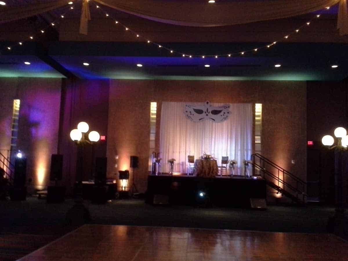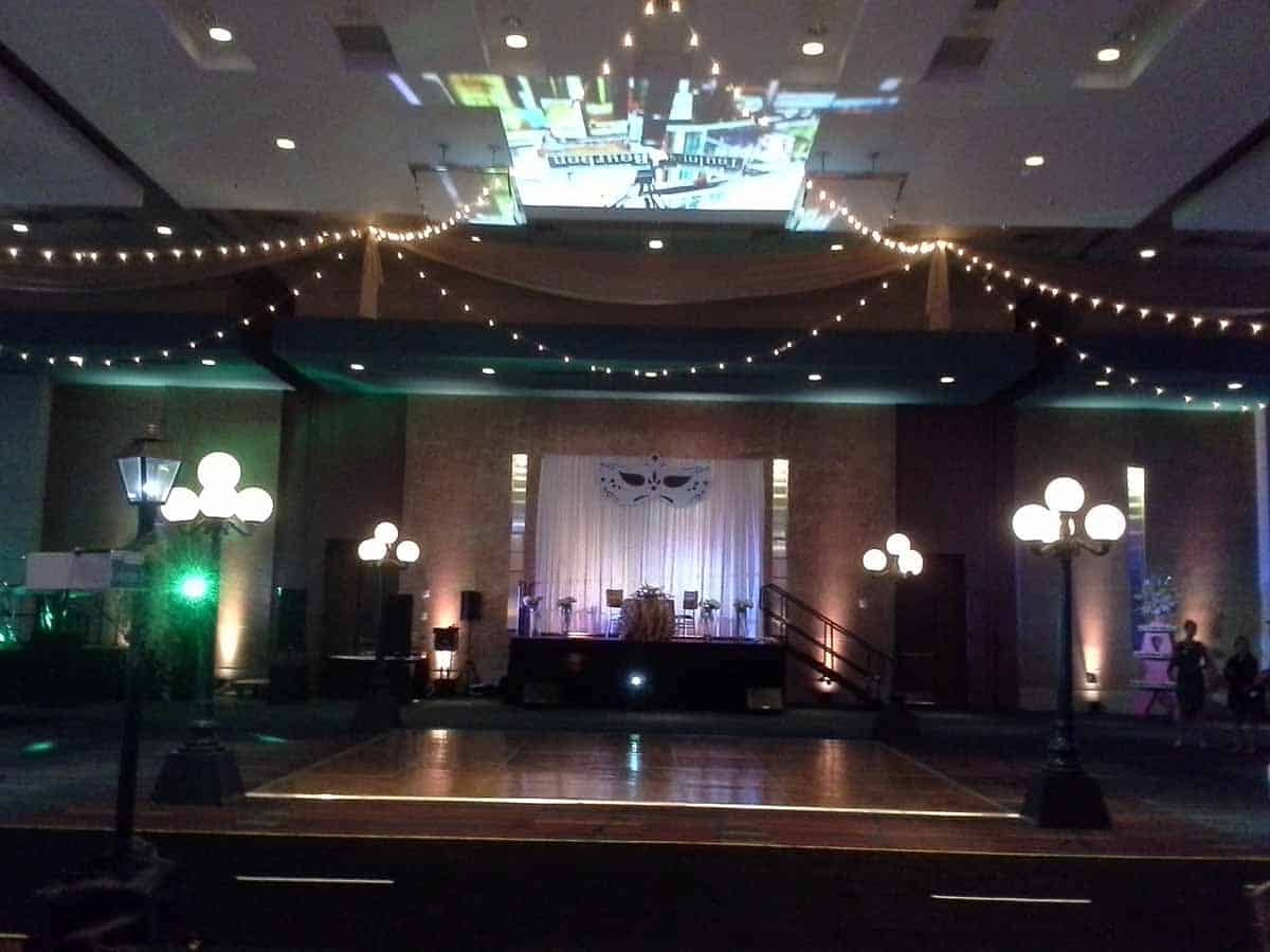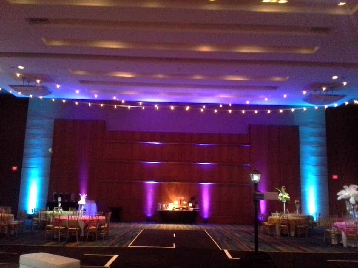 Cafe Style Stringers above head-table (50′ w/ dim control)