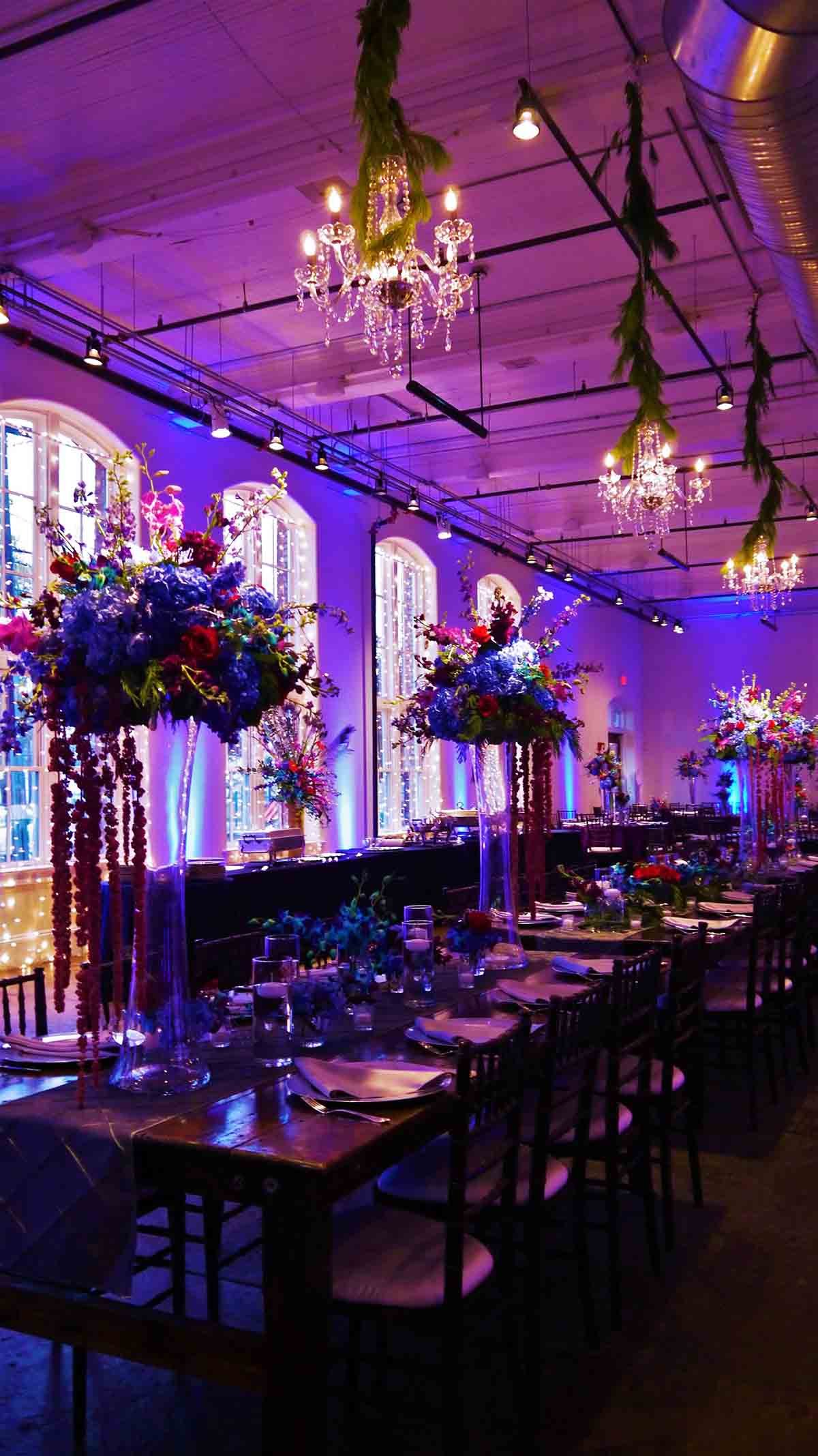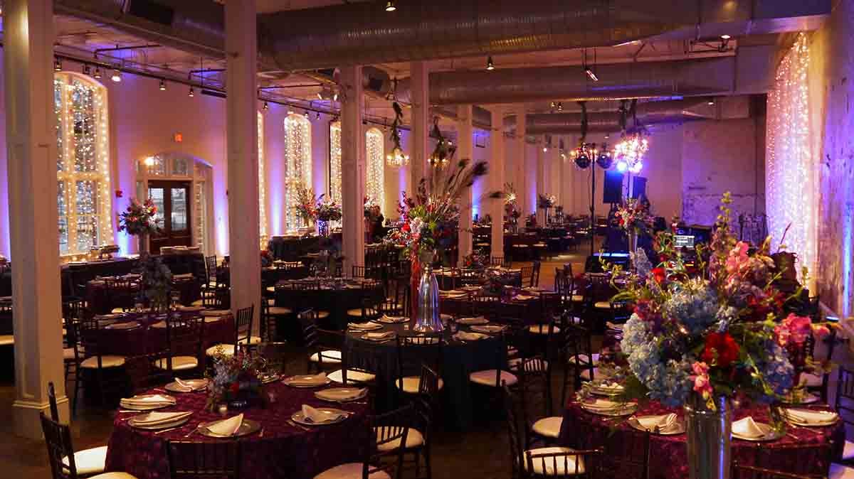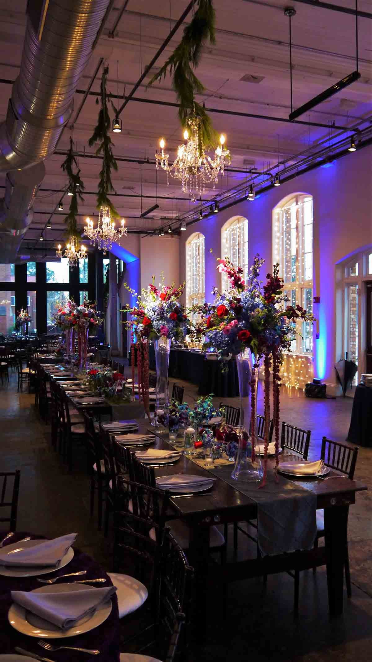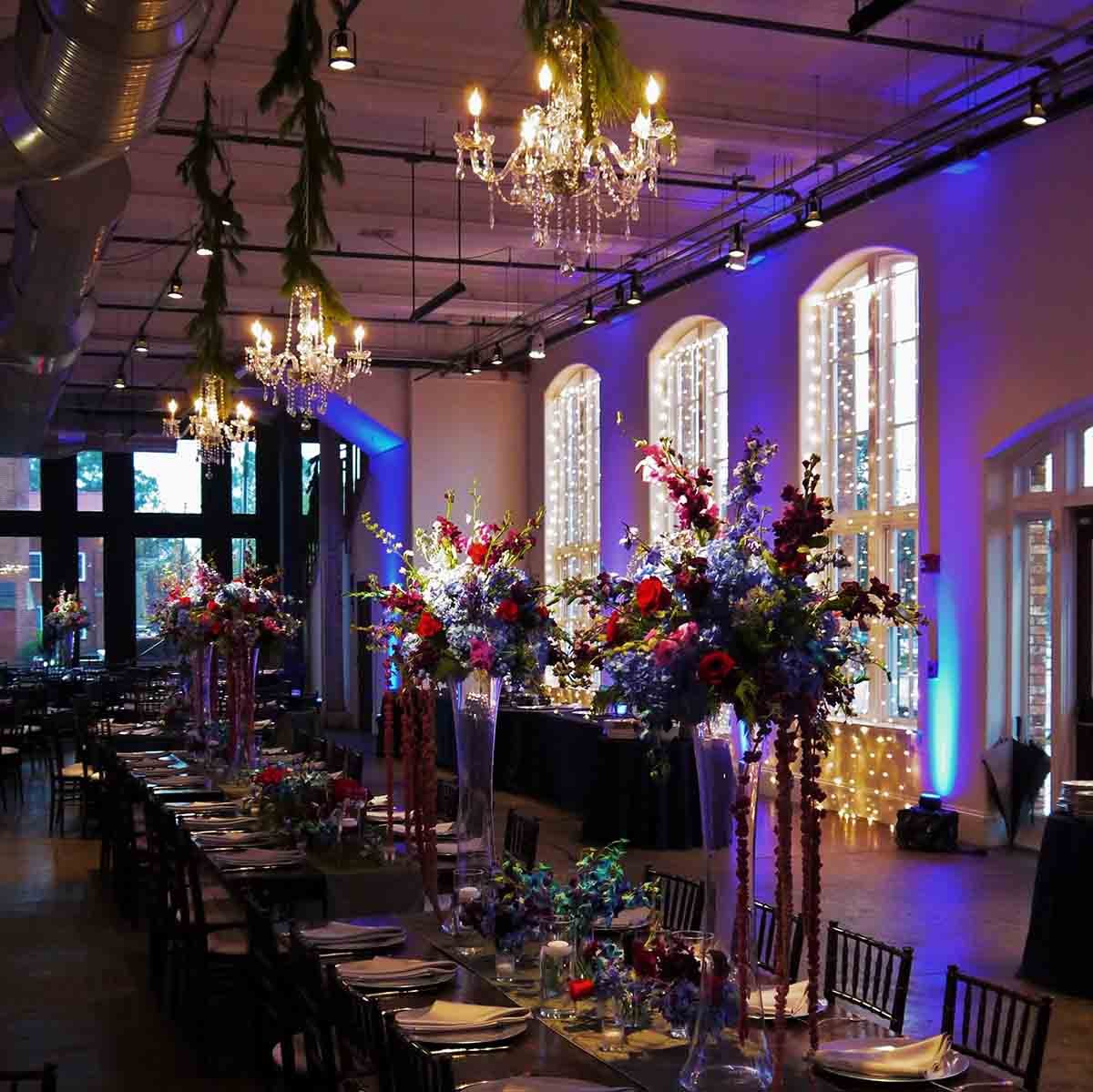 Here’s a Corporate Holiday Event where we were brought in to provide lighting and effects for the Ritedose Corporation Christmas Holiday Party held at 701 Whaley in the Granby Room and the Grand Hall in Columbia, SC The event catering was scrumptiously provided by Aberdeen Catery. The party entertainment was provided by The Finesse Band. Party Reflections was there to help set the seating and then some, and the beautiful floral arrangements were provided by Something Special florist.