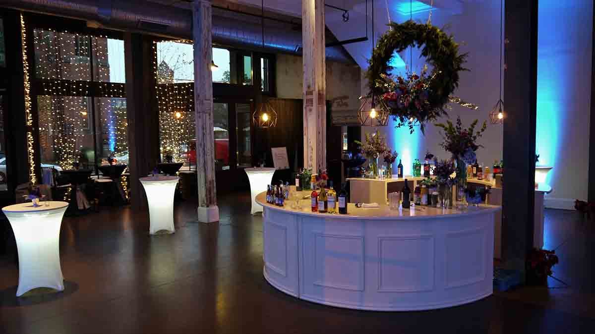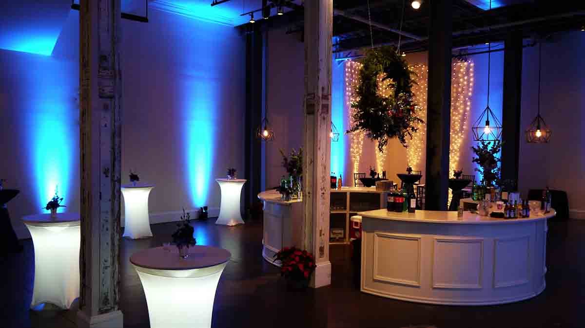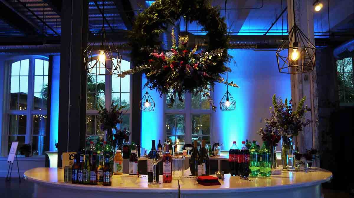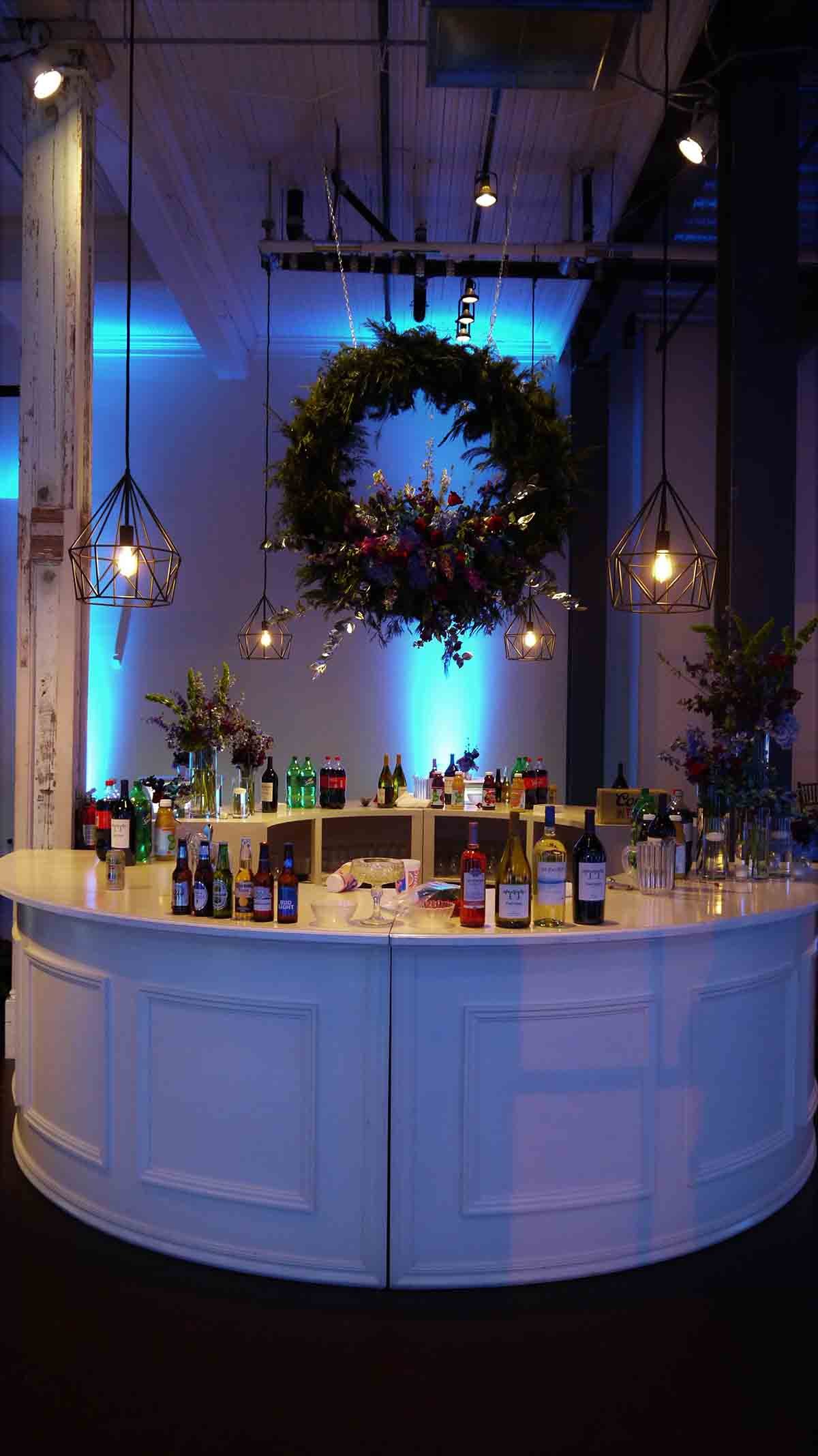 3 Spotlight for large floral over circle bar in center of room (hanging floral provided