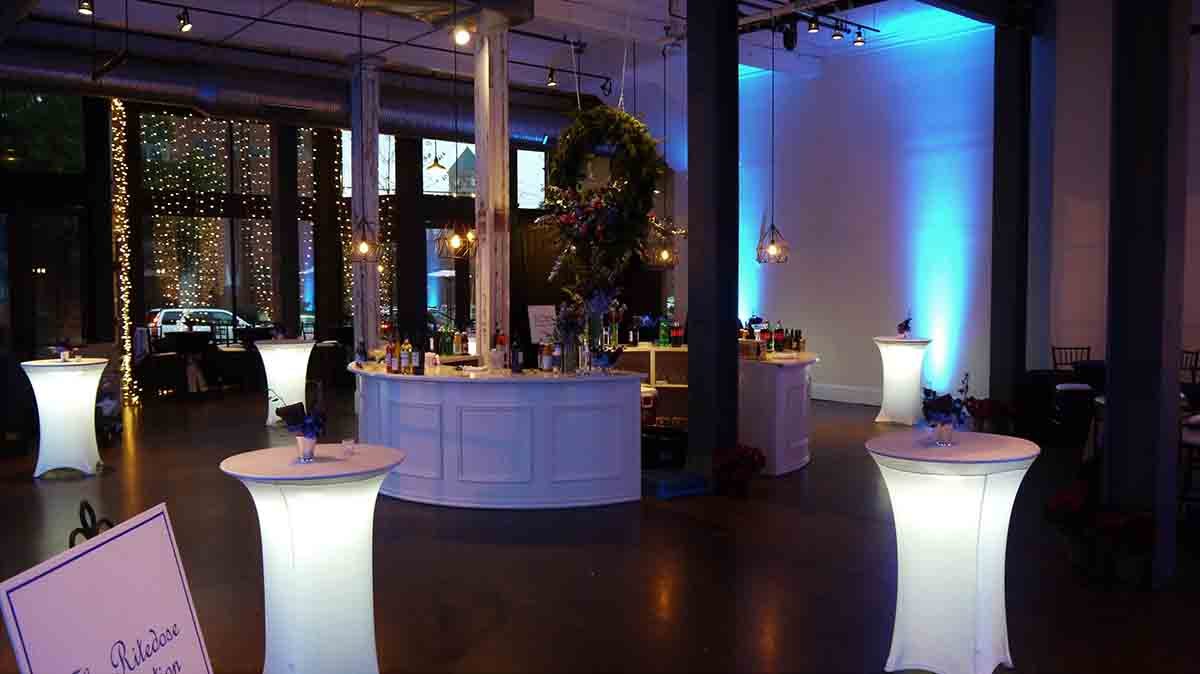 8 Under-Table Lighting for cocktail tables w/white spandex