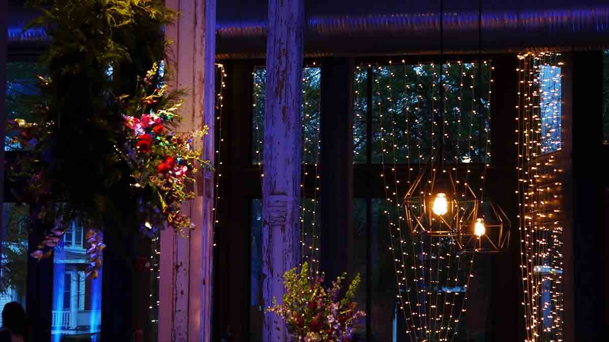1 Mini-string light curtain on corner wall behind lounge - GRAND HALL:
