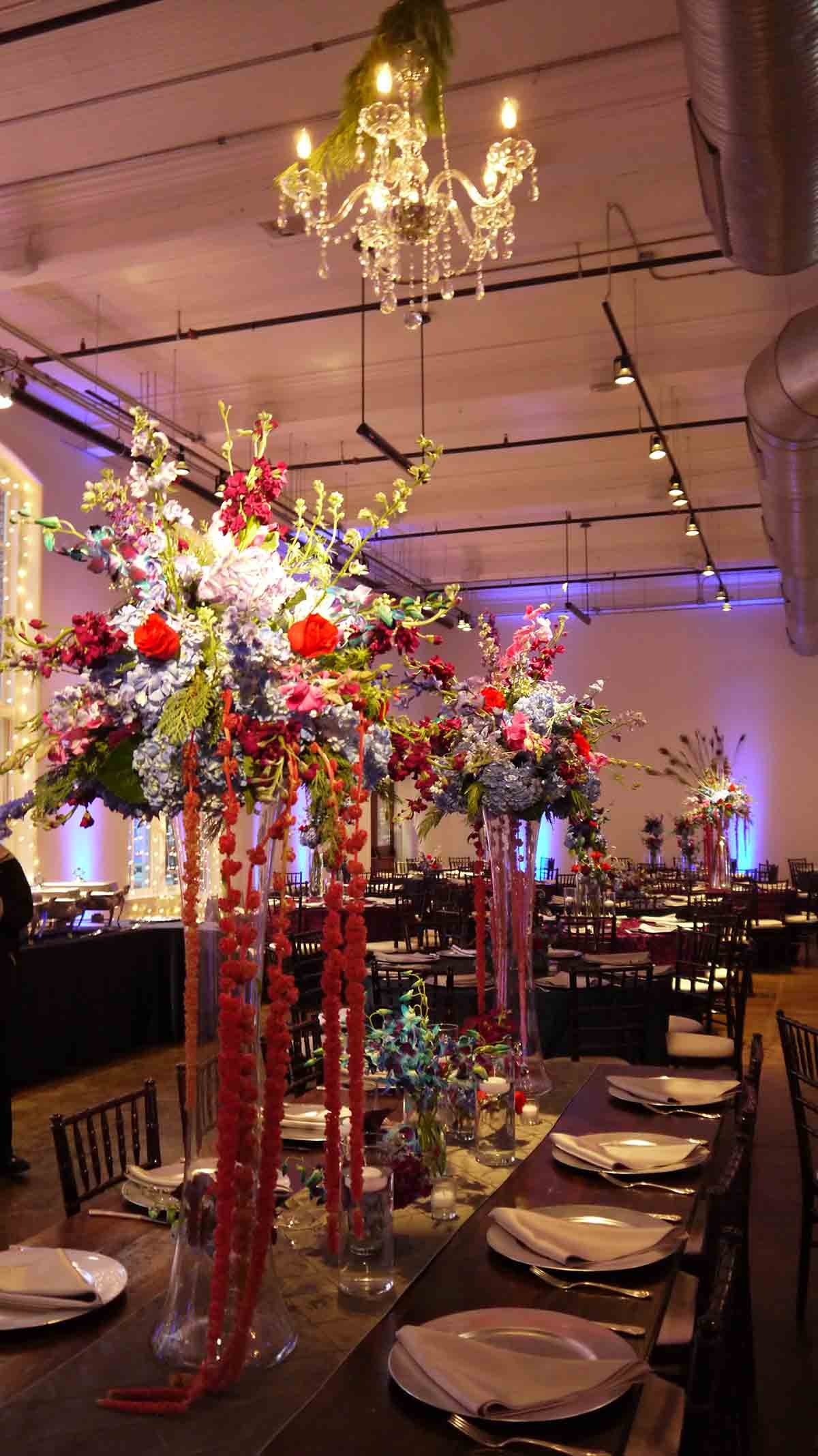 3 AM Crystal Chandeliers over farm tables