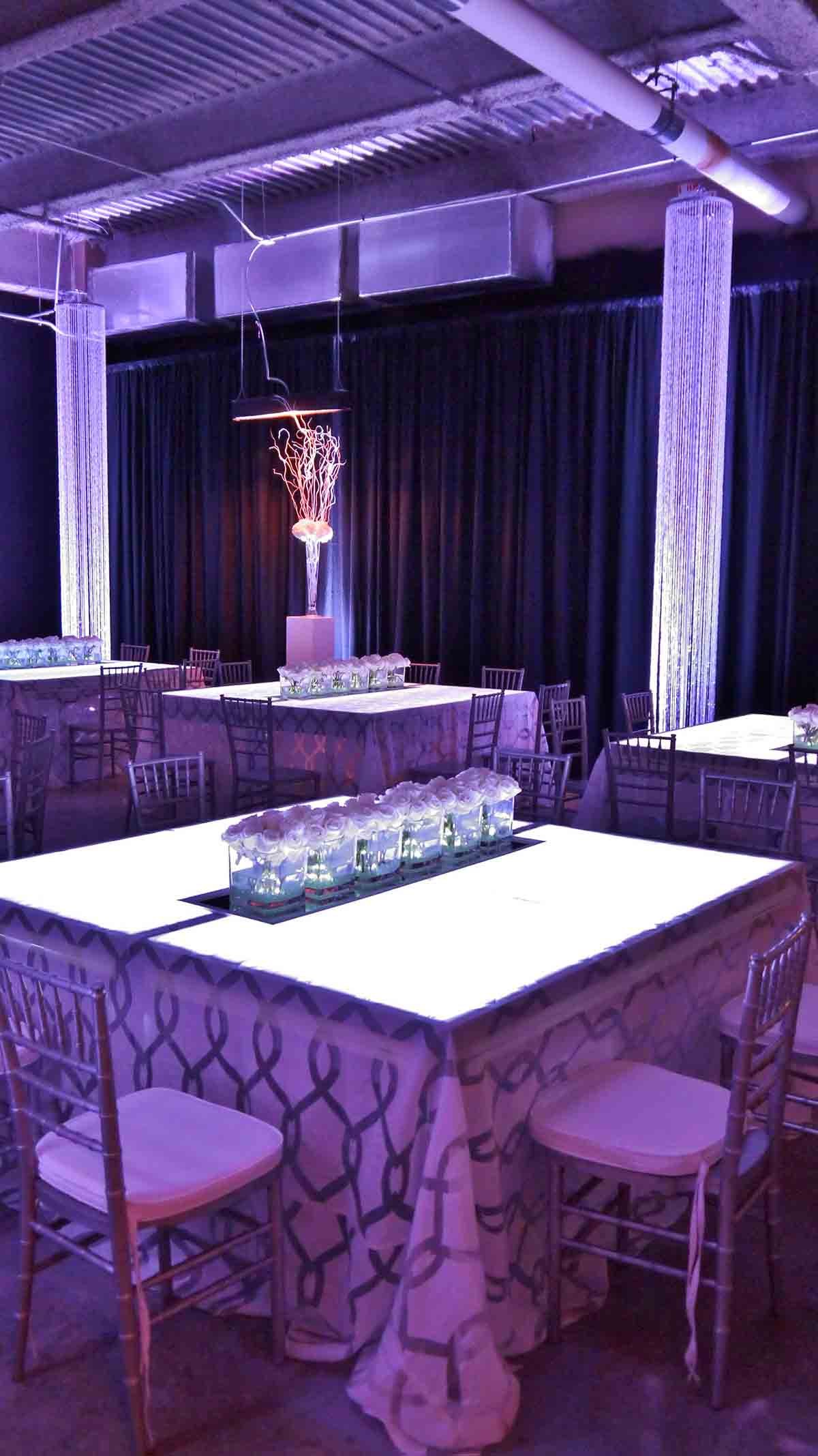 Uplighting for the arrangements on pedestals around the room