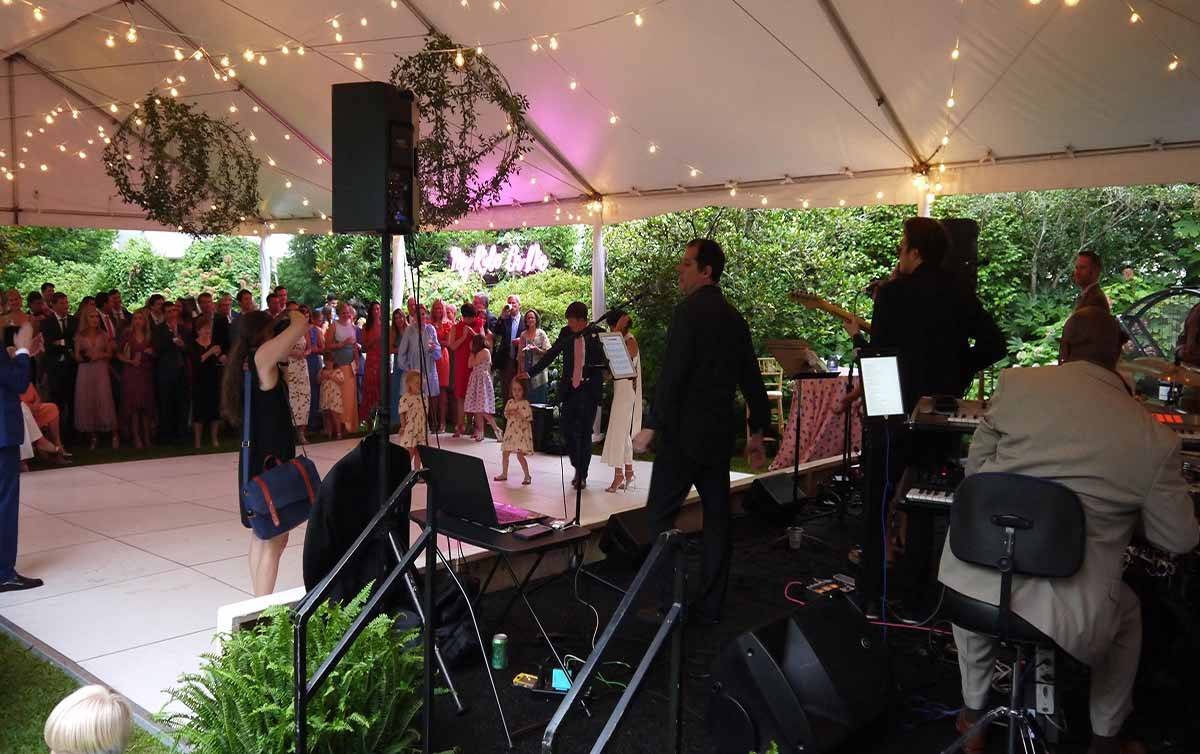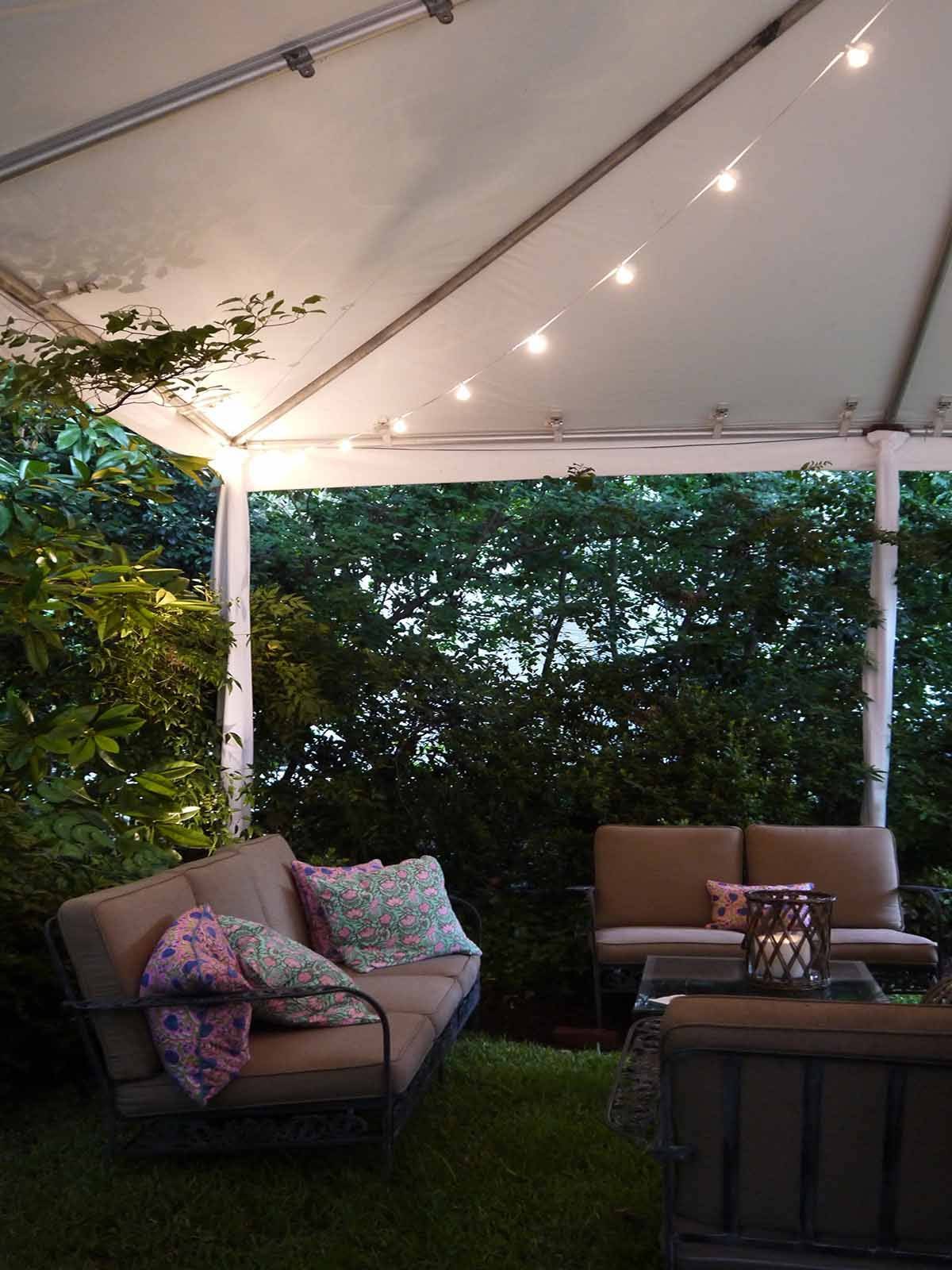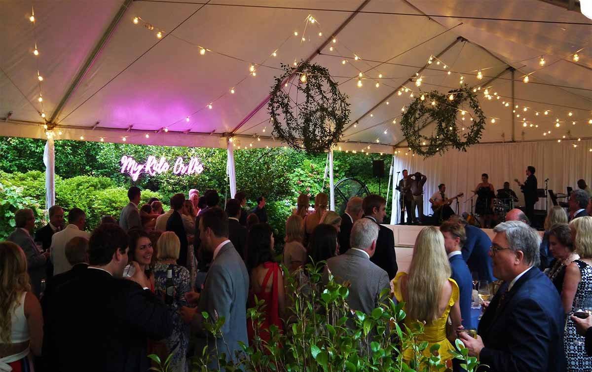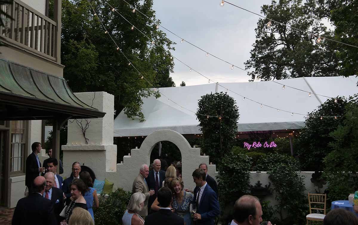 Julianne Sojourner, who owns the floral and event design business, My Friend’s Garden, called on us to help light this beautiful wedding for her clients. This is the Cochran-Baldwin Wedding and it was held at a private residence in Columbia SC. We were happy to help with providing Cafe-style stringers, uplighting around the property, and spotlighting. We also assisted Julianne in hanging her spheres over the dancefloor and hanging the “My Ride or Die” sign provided by the client.